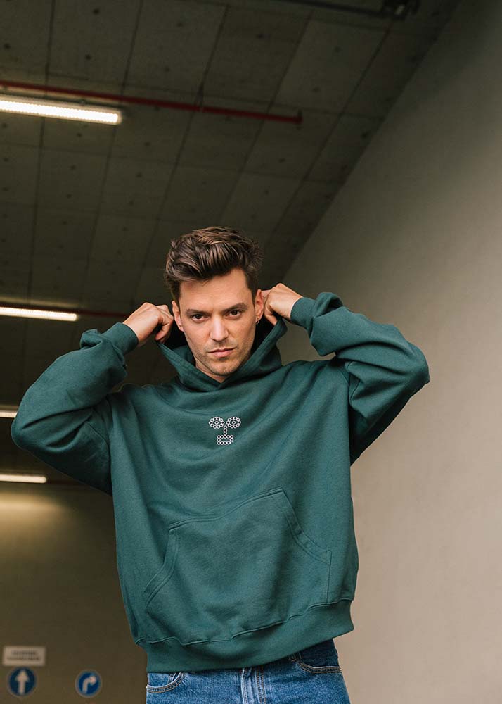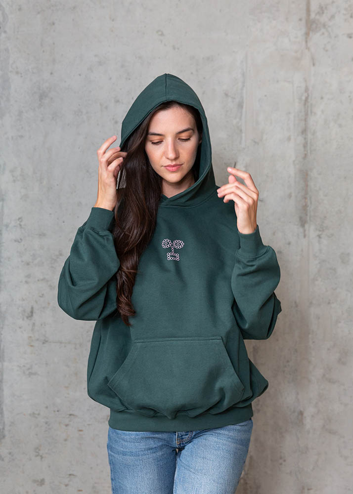 Hoodie Forest Green - Pink Details
